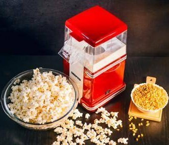 استفاده آسان – این پاپ کورن ساز مکانیزم بسیار ساده ای دارد و می توان از آن برای تهیه پاپ کورن خانگی خوشمزه، تازه و سالم به سبک تئاتر خانگی استفاده کرد. مناسب برای شب های سینما در خانه تنها با فشار دادن یک دکمه، تمام دستورالعمل ها ارائه می شود. اکنون می توانید بنشینید و از پاپ کورن سالم تر، کم کالری و بدون چربی خانگی تازه لذت ببرید و با یک سینمای خانگی سرگرم شوید. پخت و پز با گردش هوا – یک عنصر گرم کننده قدرتمند 1200 واتی به هوای گرم اجازه می دهد تا به سرعت در سراسر دستگاه گردش کند و اطمینان حاصل شود که پاپ کورن با سرعت بسیار بیشتری پخته می شود. این ساز از جریان هوای گرم برای پخت و پز استفاده می کند. از روغن و چربی استفاده نمی کند. بنابراین اگر عاشق میان وعده هستید و فکر میکنید که فیلمها و پاپ کورن همیشه با هم هستند، این وسیله برای شما مناسب است. طراحی زیبا – این پاپ کورن ساز طراحی شیک و جمع و جور دارد. دارای کلید ON/OFF مشکی می باشد. این رویه این ساز دارای یک دهانه است و پاپ کورن شما بدون ایجاد آشفتگی در یک کاسه جمع می شود. بیرون آوردن پاپ کورن را بسیار آسان می کند. این دستگاه پاپ کورن طعم دار تمیز کردن را آسان می کند زیرا هیچ کره یا روغنی در کار نیست، به این معنی که تنها کاری که باید انجام دهید این است که با یک حوله مرطوب پاک کنید، و همین. ظرفیت بزرگ – سازنده می تواند پاپ کورن را به سرعت درست کند. در هر بار استفاده می توانید یک کاسه کامل پاپ کورن تهیه کنید. تعداد تکرارهایی که باید انجام شود را کاهش می دهد و به اندازه کافی به شما می دهد تا با خانواده خود به اشتراک بگذارید. یا با استفاده از گیاهان و ادویه جات ترش، خامه ترش و پیازچه، پنیر چیلی یا کره بادام زمینی طعم سالم تری ایجاد کنید! جزئیات مصرف انرژی، 2 سال ضمانت – طراحی روی میز کوچک این اطمینان را می دهد که این پاپ کورن ساز فضای زیادی را در میز غذا اشغال نمی کند و در صورت عدم استفاده به راحتی قابل نگهداری است. این پاپ کورن ساز از AC: 220 – 240 ولت، فرکانس 50/60 هرتز و توان 1200 وات استفاده می کند.